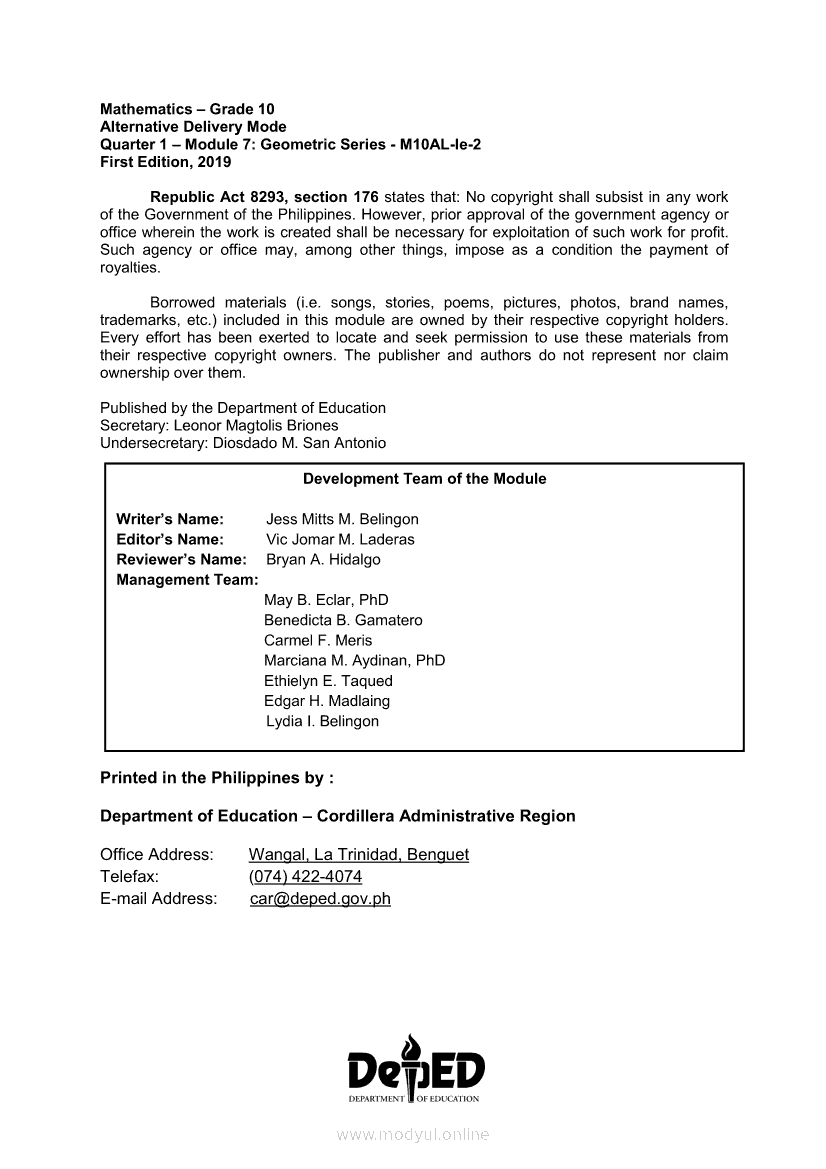 Math 10 Module 7 Geometric SeriesApr 22, 2021 Grade 10Xiaomi Redmi Watch 5 Active 2inch LCD Display Clear Calling 5ATM Waterproof Smart Watch for only ₱3,999 ₱1,200!. Math 10RelatedMATHEMATICS Quarter 4 – Module 6 Measures of Position and Other Statistical MethodsMATHEMATICS Quarter 4 – Module 5 Statistical Mini-ResearchMATHEMATICS Quarter 4 – Module 1 Illustrating The Measures of Position for Ungrouped DataMATHEMATICS Quarter 4 – Module 3 Interpreting Measures of PositionMATHEMATICS Quarter 4 – Module 4 Solving Problems Involving Measures of Position