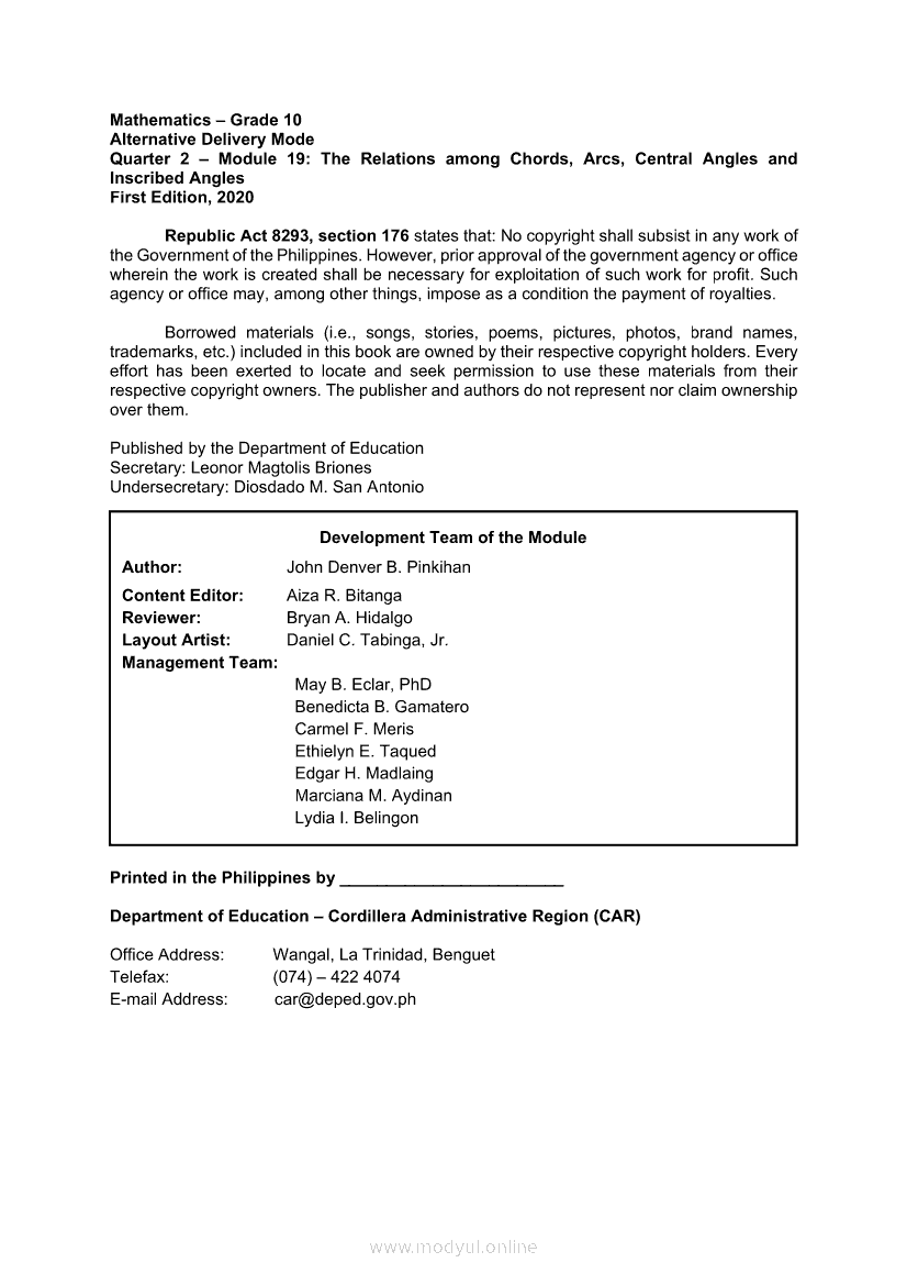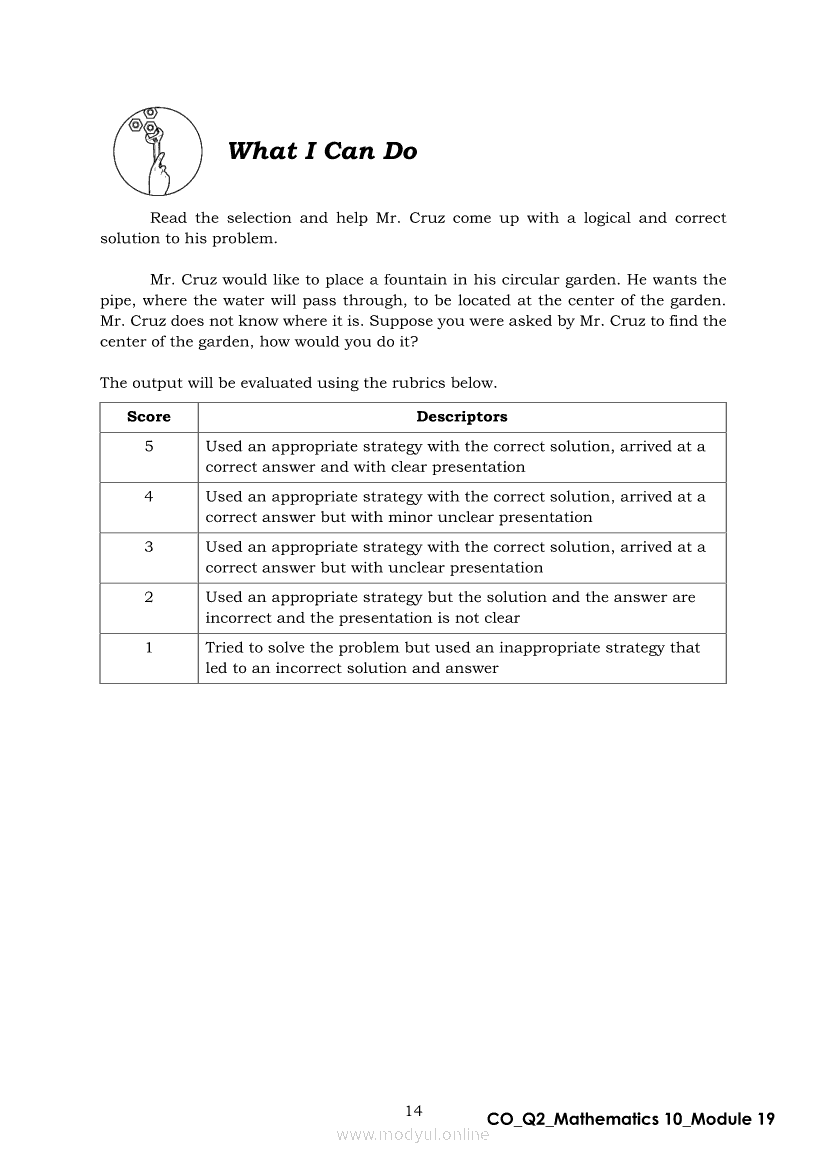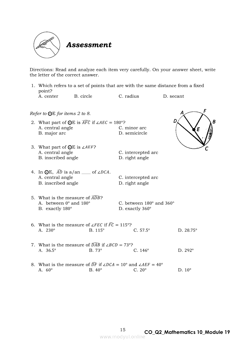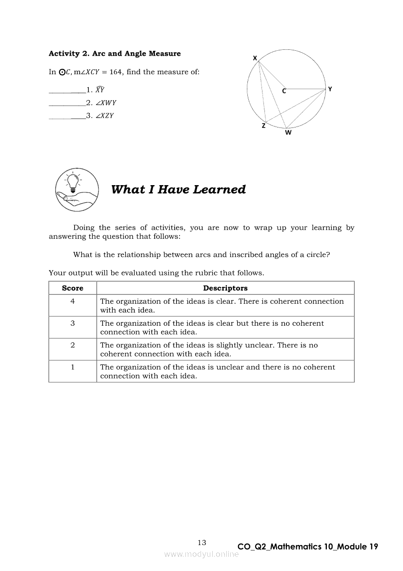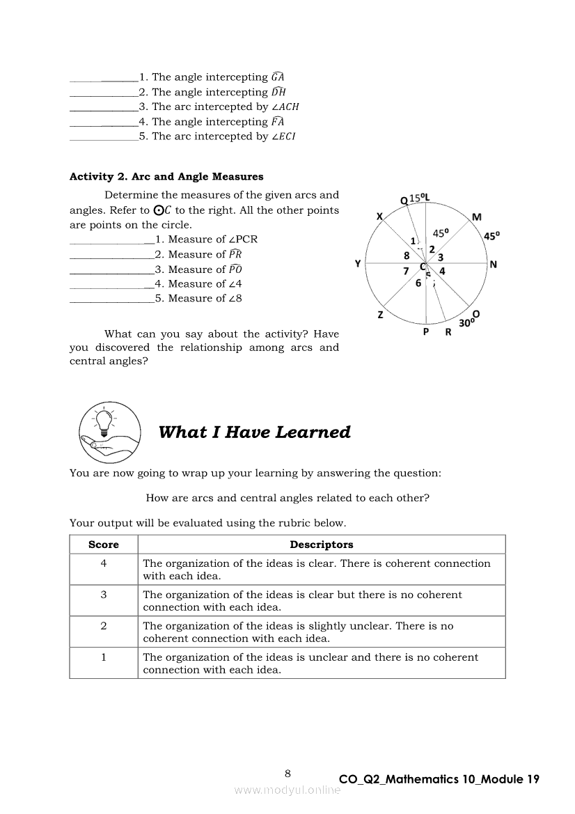 Math 10 Quarter 2 – Module 19: The Relations among Chords, Arcs, Central Angles and Inscribed AnglesApr 22, 2021 Grade 10Xiaomi Redmi Watch 5 Active 2inch LCD Display Clear Calling 5ATM Waterproof Smart Watch for only ₱3,999 ₱1,200!. Math 10RelatedMATHEMATICS Quarter 4 – Module 1 Illustrating The Measures of Position for Ungrouped DataMATHEMATICS Quarter 4 – Module 6 Measures of Position and Other Statistical MethodsMATHEMATICS Quarter 4 – Module 4 Solving Problems Involving Measures of PositionMATHEMATICS Quarter 4 – Module 3 Interpreting Measures of PositionMATHEMATICS Quarter 4 – Module 5 Statistical Mini-Research