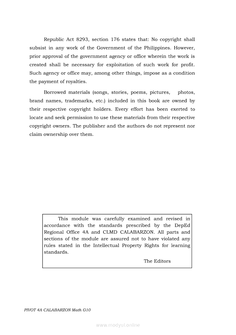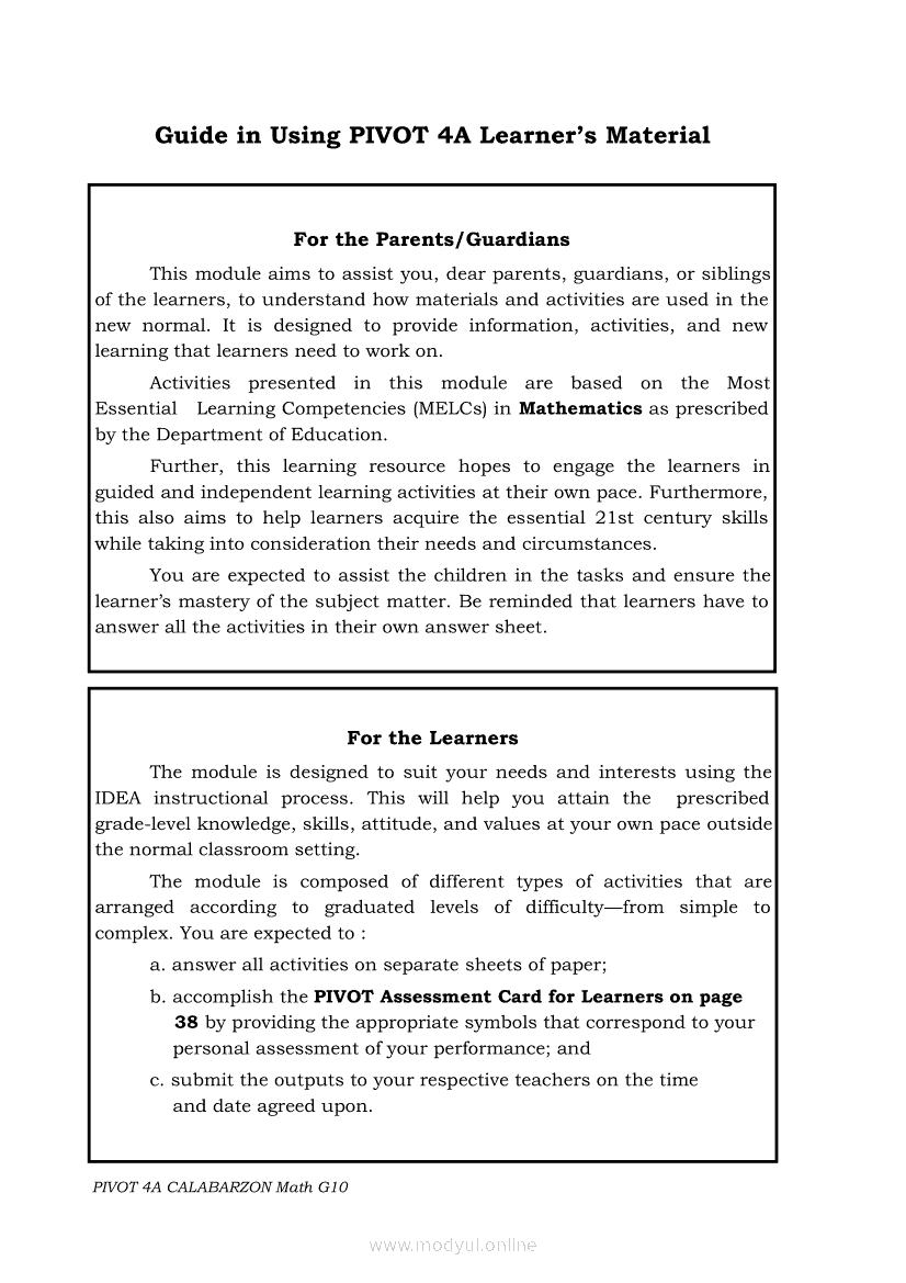 Math 10 Second Quarter Module (PIVOT)Apr 22, 2021 Grade 10Xiaomi Redmi Watch 5 Active 2inch LCD Display Clear Calling 5ATM Waterproof Smart Watch for only ₱3,999 ₱1,200!. Math 10RelatedMATHEMATICS Quarter 4 – Module 2 Calculating Measures of Position for Grouped DataMATHEMATICS Quarter 4 – Module 5 Statistical Mini-ResearchMATHEMATICS Quarter 4 – Module 1 Illustrating The Measures of Position for Ungrouped DataMATHEMATICS Quarter 4 – Module 6 Measures of Position and Other Statistical MethodsMATHEMATICS Quarter 4 – Module 4 Solving Problems Involving Measures of Position