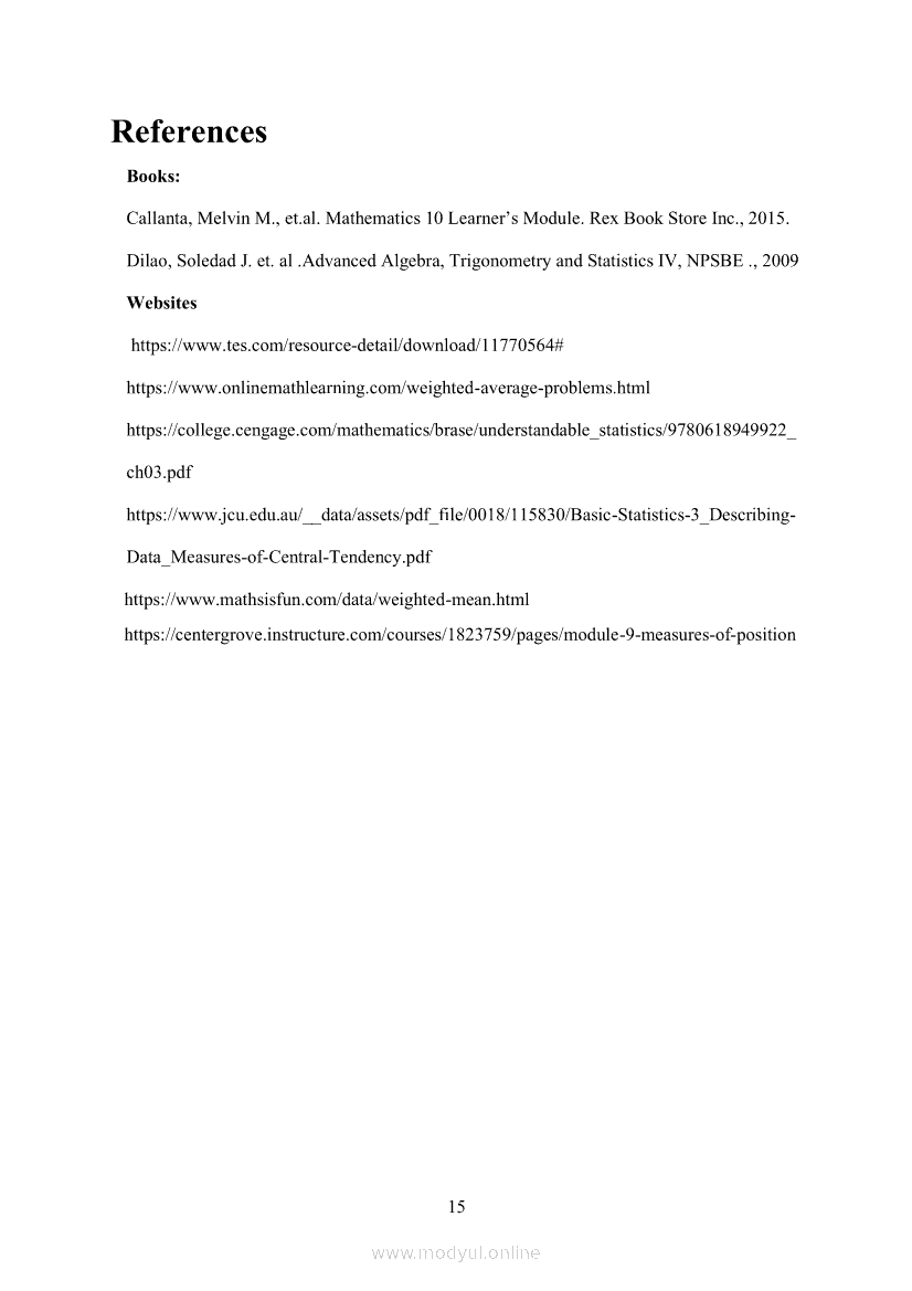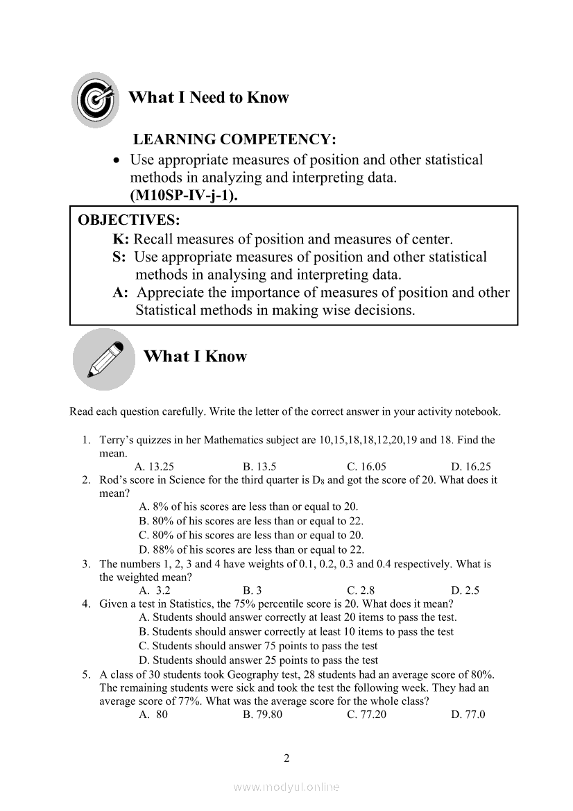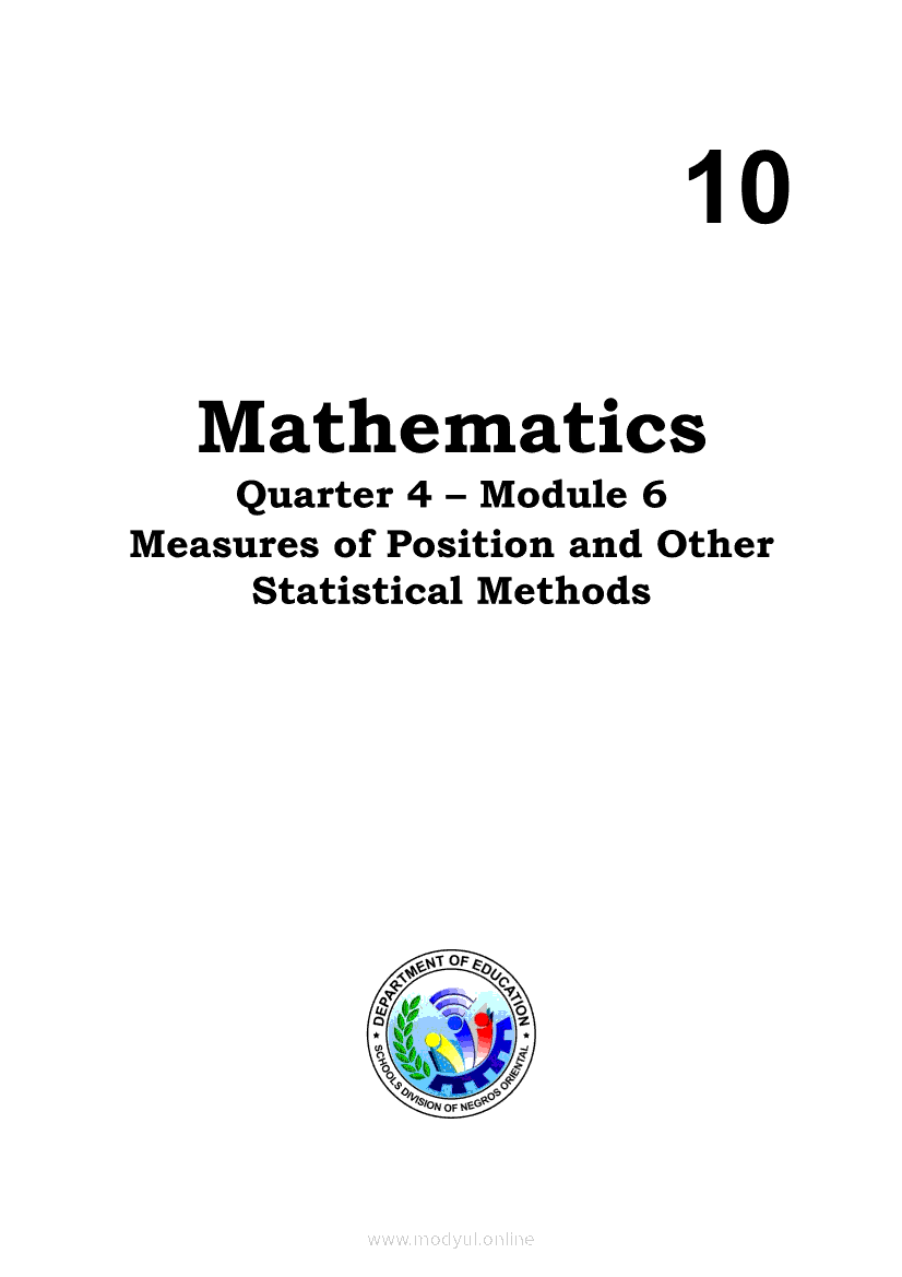 MATHEMATICS Quarter 4 – Module 6 Measures of Position and Other Statistical MethodsMay 28, 2021 Grade 10Xiaomi Redmi Watch 5 Active 2inch LCD Display Clear Calling 5ATM Waterproof Smart Watch for only ₱3,999 ₱1,200!. Math 10 4th QuarterRelatedMATHEMATICS Quarter 4 – Module 1 Illustrating The Measures of Position for Ungrouped DataMATHEMATICS Quarter 4 – Module 5 Statistical Mini-ResearchMATHEMATICS Quarter 4 – Module 3 Interpreting Measures of PositionMATHEMATICS Quarter 4 – Module 4 Solving Problems Involving Measures of PositionMATHEMATICS Quarter 4 – Module 2 Calculating Measures of Position for Grouped Data