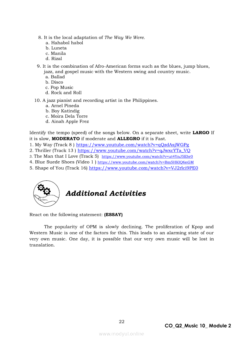 Music 10 Quarter 2 – Module 2: Afro-Latin American and Popular MusicApr 22, 2021 Grade 10Xiaomi Redmi Watch 5 Active 2inch LCD Display Clear Calling 5ATM Waterproof Smart Watch for only ₱3,999 ₱1,200!. Music 10RelatedMusic Quarter 4 – Module: 4b 20th and 21st Century Multimedia Forms: Musical PlaysMusic 10 Quarter 2 – Module 1: Afro-Latin American and Popular MusicMusic 10 Module 1: Music of the 20th CenturyMusic 10 Second Quarter Module (PIVOT)Xiaomi Redmi Watch 5 Active 2inch LCD Display Clear Calling 5ATM Waterproof Smart Watch for only ~~₱3,999~~ ₱1,200.