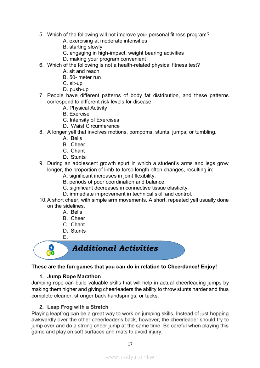 Physical Education Quarter 4 – Module 4A Other Dance Forms (Cheerdance and Contemporary Dance)May 28, 2021 Grade 10Xiaomi Redmi Watch 5 Active 2inch LCD Display Clear Calling 5ATM Waterproof Smart Watch for only ₱3,999 ₱1,200!. PE 10 4th QuarterRelatedPhysical Education Quarter 4 – Module 4b: Other Dance FormsMATHEMATICS Quarter 4 – Module 2 Calculating Measures of Position for Grouped DataTLE-IA-CARPENTRY Quarter 4 – Module 4 (Week 7&8) OBSERVE GOOD FORMWORKS REQUIREMENTSAraling Panlipunan Ikaapat na Markahan – Modyul 3 Mga Karapatang PantaoFilipino 10 Ikaapat na Markahan – Modyul 2 PAGSULAT NG BUOD HANGO SA TIMELINE (Kaligirang Pangkasaysayan ng El Filibusterismo)