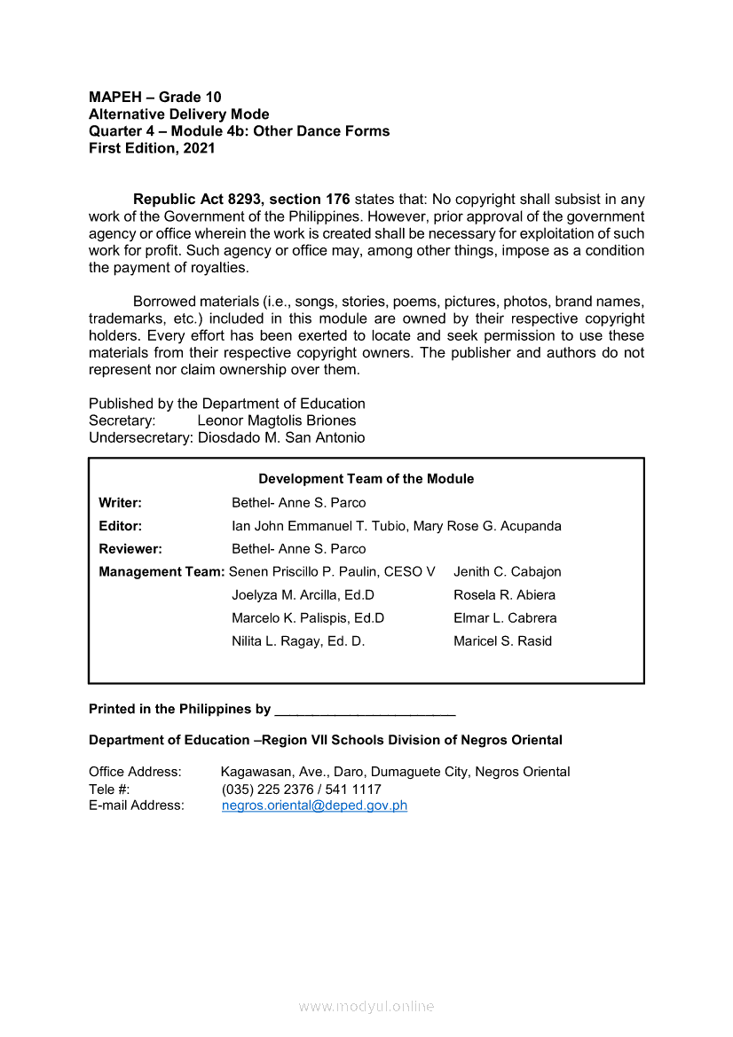 Physical Education Quarter 4 – Module 4b: Other Dance FormsMay 28, 2021 Grade 10Xiaomi Redmi Watch 5 Active 2inch LCD Display Clear Calling 5ATM Waterproof Smart Watch for only ₱3,999 ₱1,200!. PE 10 4th QuarterRelatedPhysical Education Quarter 4 – Module 4A Other Dance Forms (Cheerdance and Contemporary Dance)Edukasyon sa Pagpapakatao Ikaapat na Markahan – Modyul 3b: Isyu sa Kawalan ng Paggalang sa Katotohanan Ikaanim na LinggoEnglish Quarter 4 – Module 3: Giving Expanded Definitions of WordsAraling Panlipunan Ikaapat na Markahan – Modyul 4 Ang mga Karapatang Pantao at ang PagkamamayanTLE -HE - HAIRDRESSING Quarter 4 - Module 2: APPLYING MAKE-UP “Perform Post Service Activities”