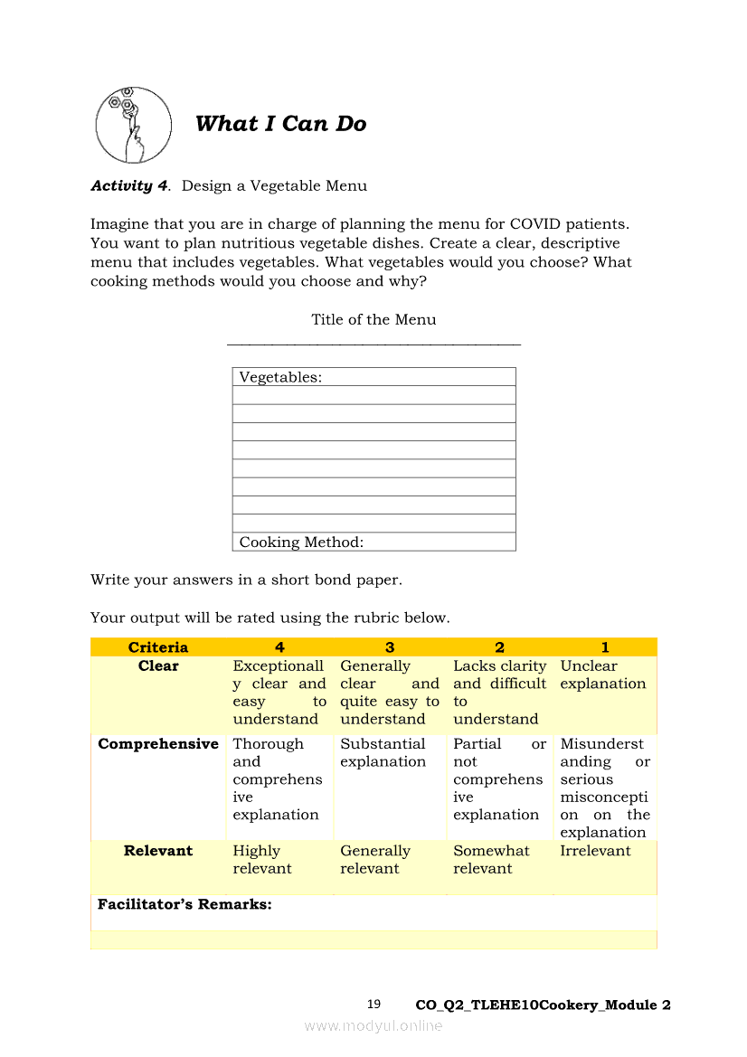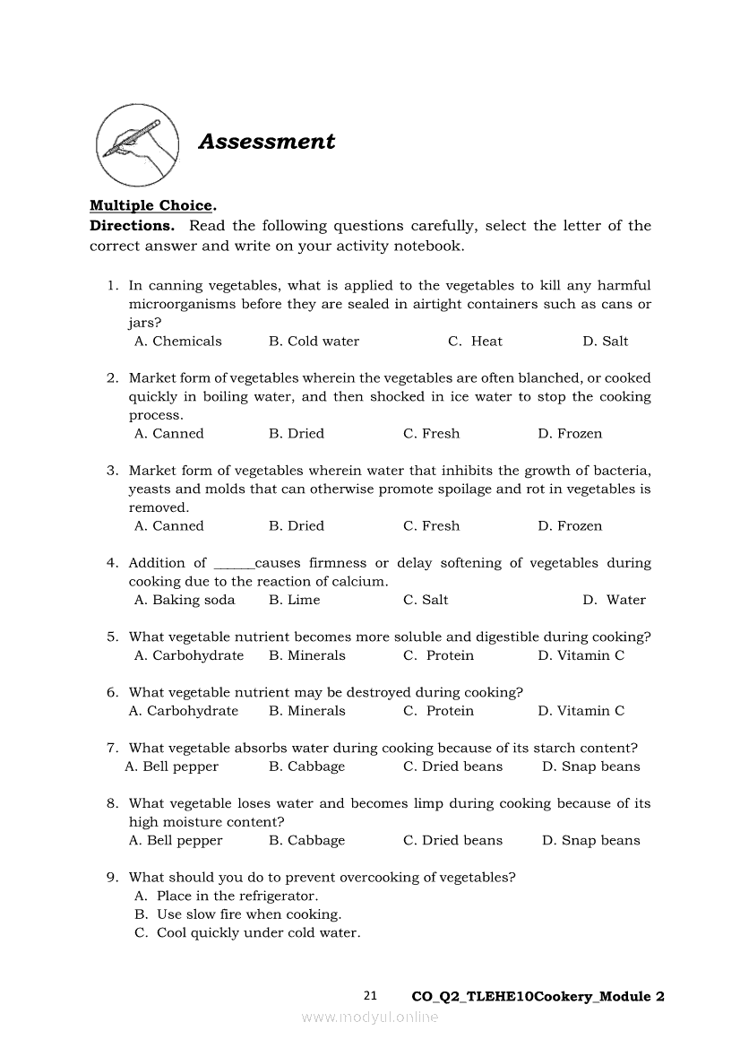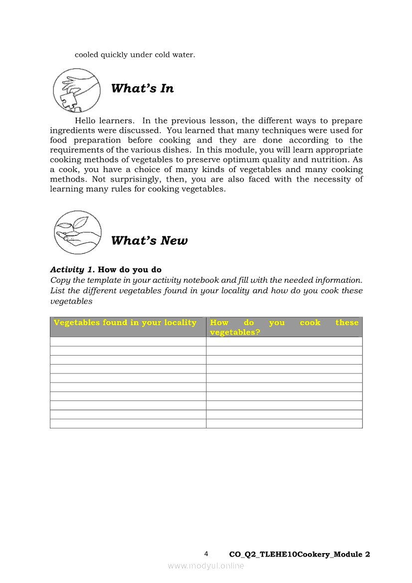 TLE - Home Economics 10 Quarter 2 - Module 2: Prepare Vegetable Dishes COOKERY NC IIApr 22, 2021 Grade 10Xiaomi Redmi Watch 5 Active 2inch LCD Display Clear Calling 5ATM Waterproof Smart Watch for only ₱3,999 ₱1,200!. TLE 10RelatedTLE-IA-AUTOMOTIVE SERVICING NC 1 Quarter 4 – Module 7 & 8 - INSPECT TIRE WEAR AND DEFORMITIESTLE–IA-EIM Quarter 4 – Module 1b (Week 3-4): National Electrical Code (NEC) provisions on Installing Wiring Devices / GFCITLE - HE - HAIRDRESSING Quarter 4 - Module 1: APPLYING MAKE-UPTLE-IA-CARPENTRY Quarter 4 – Module 2 (Week 3&4) IDENTIFY INSTALLATION PROCEDURES OF FORMWORKS COMPONENTSTLE – HE – DRESSMAKING Quarter 4 - Module 1: Prepare Cut Parts