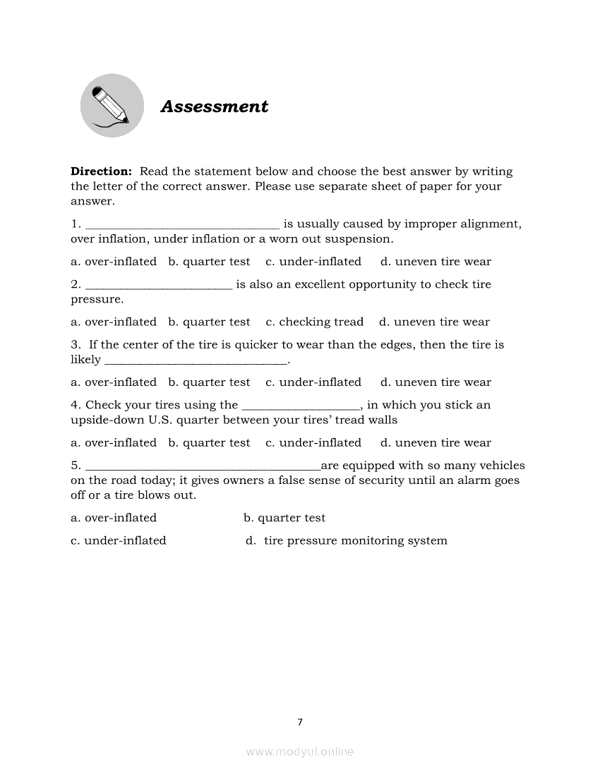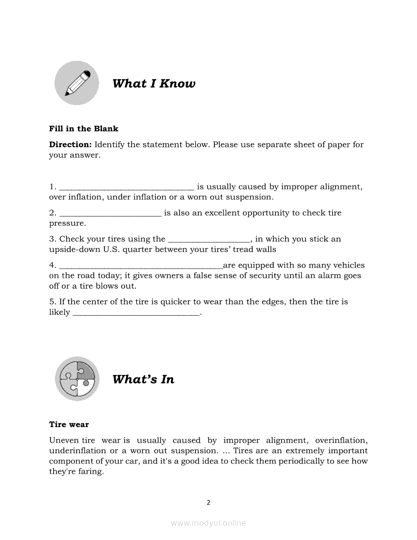 TLE-IA-AUTOMOTIVE SERVICING NC 1 Quarter 4 – Module 5 & 6: Check Tire WearMay 28, 2021 Grade 10Xiaomi Redmi Watch 5 Active 2inch LCD Display Clear Calling 5ATM Waterproof Smart Watch for only ₱3,999 ₱1,200!. TLE 10 4th QuarterRelatedTLE-IA-CARPENTRY Quarter 4 – Module 1 (Week 1&2) IDENTIFY TYPES OF FORMWORKSTLE – ICT - CSS Quarter 4 – Module 1-8: INSTALL NETWORK CABLES,TLE-IA-AUTOMOTIVE SERVICING NC 1 Quarter 4 – Module 3 & 4: Check Tire pressureTLE -HE - HAIRDRESSING Quarter 4 - Module 2: APPLYING MAKE-UP “Perform Post Service Activities”TLE–IA-EIM Quarter 4 – Module 1a (Week 1-2) Philippine Electrical Code (PEC) provisions in Installing Electrical Boxes